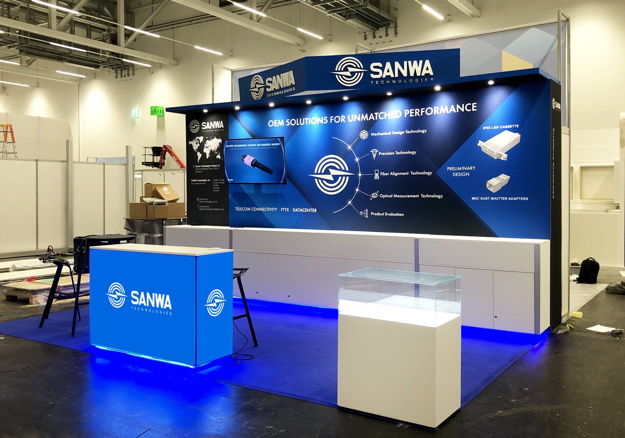 Wycięte litery 3D z plexi montowane na podstawie z transparentnej plexi to świetne rozwiązanie pozwalające na drobny akcent 3D logo z zachowaniem niewielkiego budżetu. Całość może być klejona bezpośrednio do ściany stoiska targowego. To świetne rozwiązanie szczególnie dla logoptypów/tekstów, które zawierają nieduże elementy wymagające równego montażu.