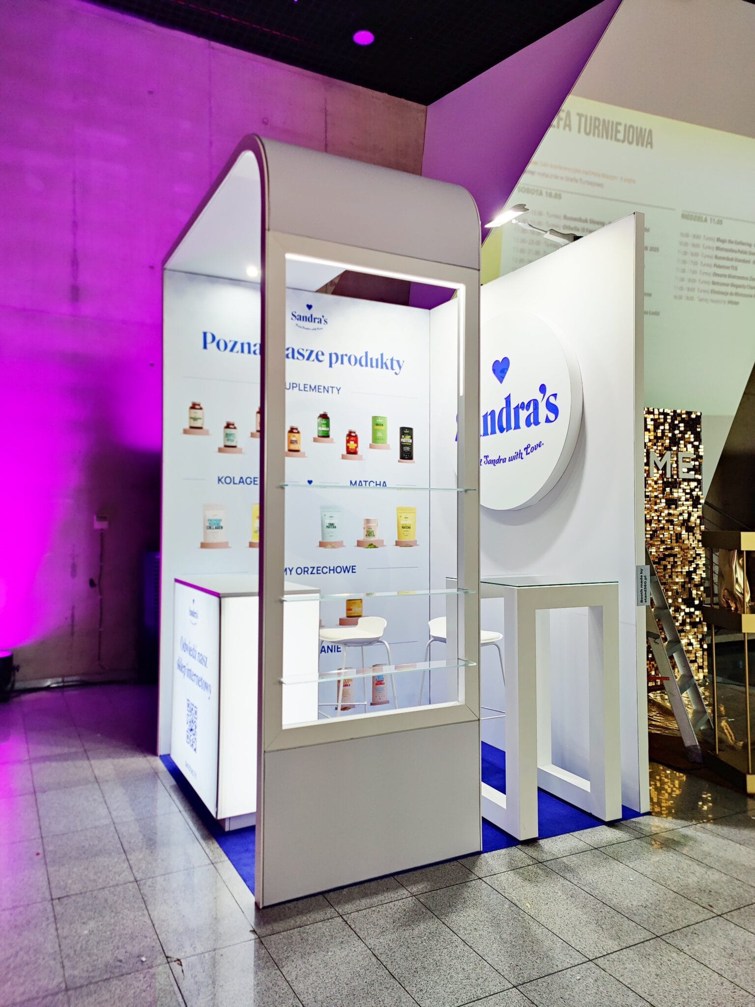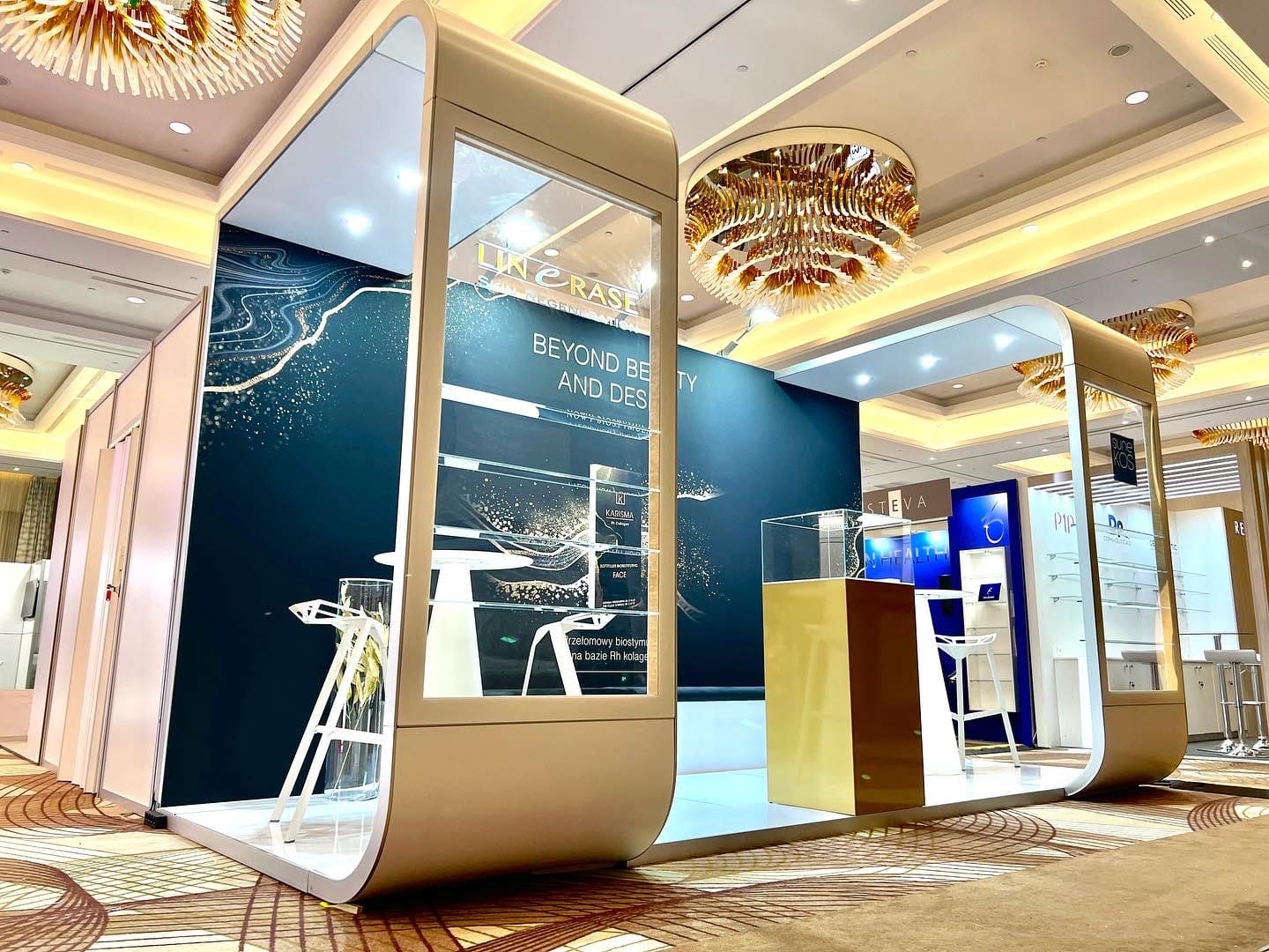 Stoiska wystawiennicze dla wystawców, pełna oprawa w tym branding, wykładziny, oświetlenie, nagłośnienie targów.