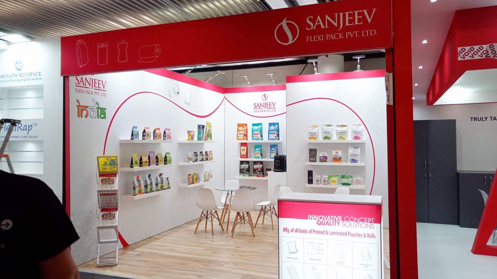 Najczęściej są to mini stoiska złożone z jednej, dwóch lub trzech ścianek, lady informacyjnej i – w razie potrzeby – ekspozytorów produktowych.