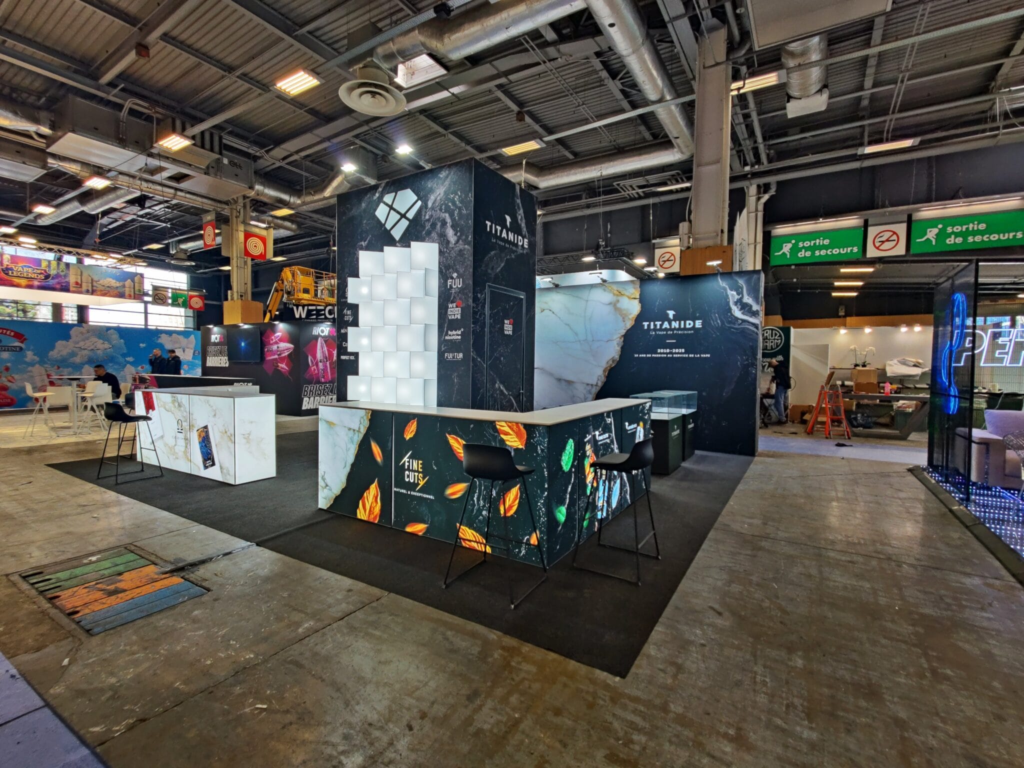 Budowa stoisk targowych Francja Paryż Vapexpo to przykład naszej współpracy z międzynarodowymi klientami, którzy oczekują kompleksowej obsługi podczas udziału w europejskich wydarzeniach targowych. Na potrzeby marki The Fuu zrealizowaliśmy projekt stoiska targowego, obejmujący projekt graficzny, produkcję oraz montaż na miejscu w Paryżu.