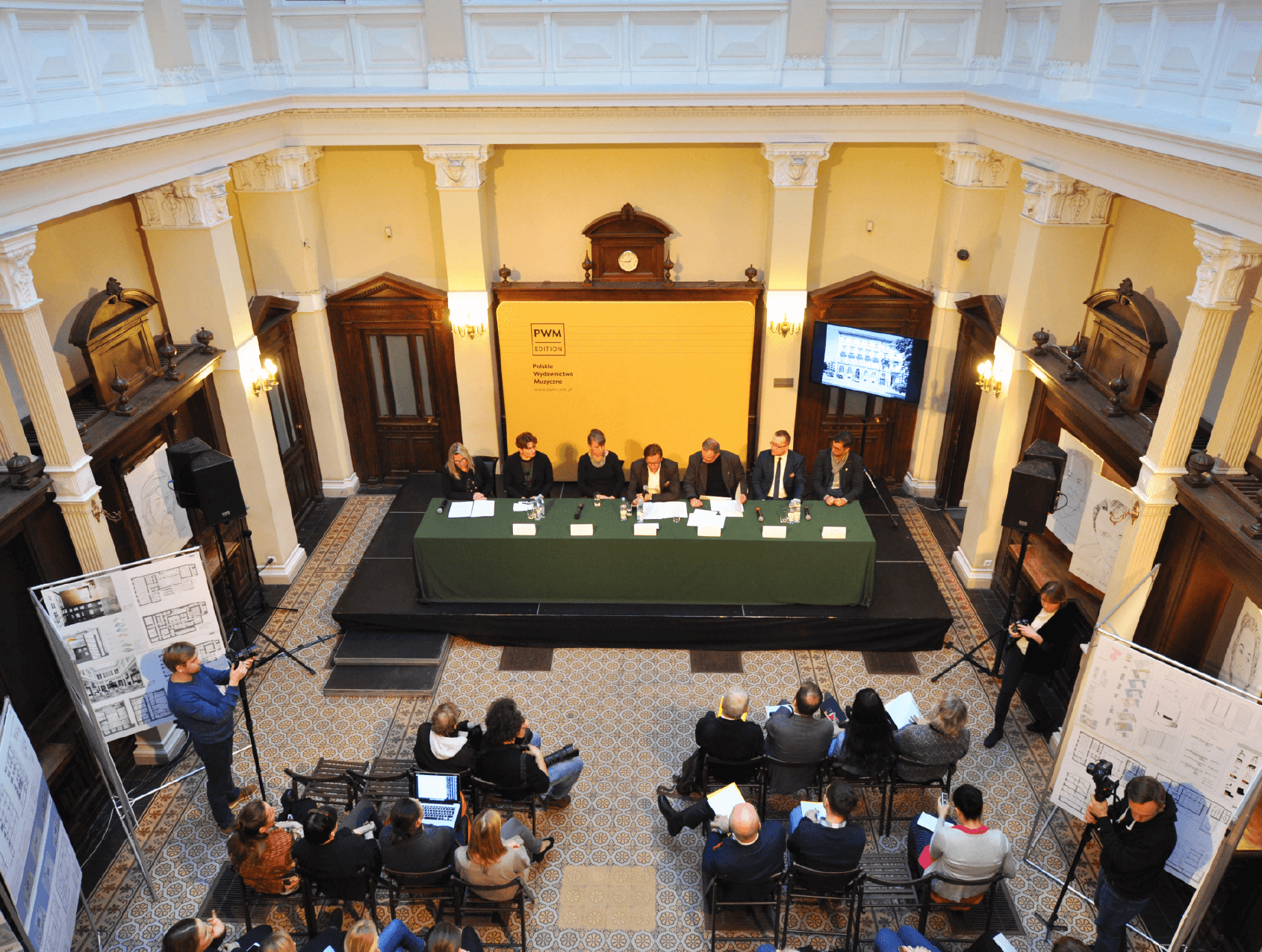 - ściany z wydrukiem grafiki (tło wystąpień)